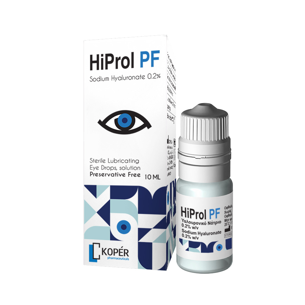 HiProl PF is a sterile ophthalmic solution indicated to lubricate and moisturize the ocular surface, providing relief from dry eye symptoms, ocular discomfort caused by environmental factors, or post-operative ocular irritation. It also supports increased comfort for contact lens users